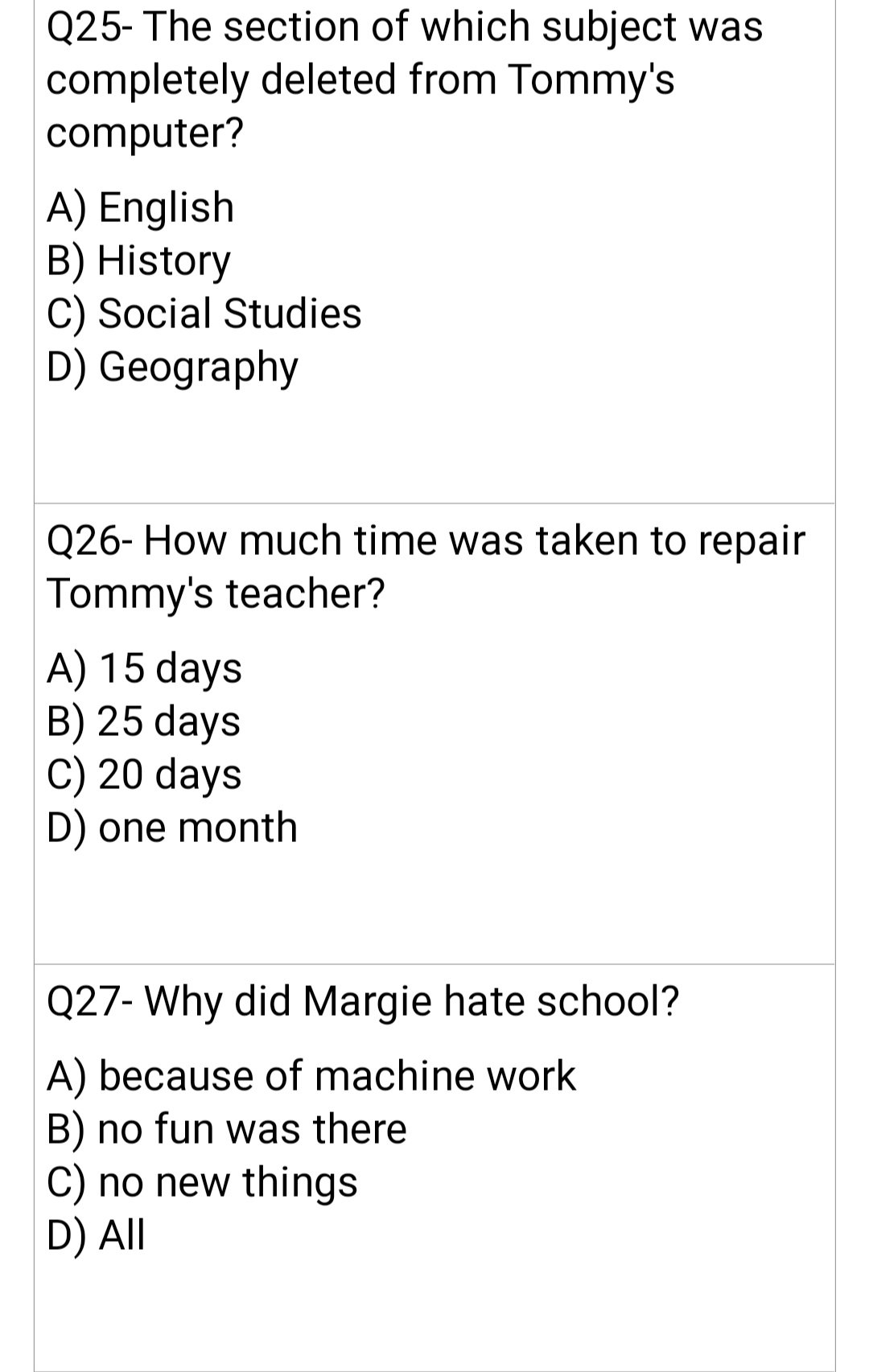 12)What was Tommy and Margie’s opinion about a man being a teacher?